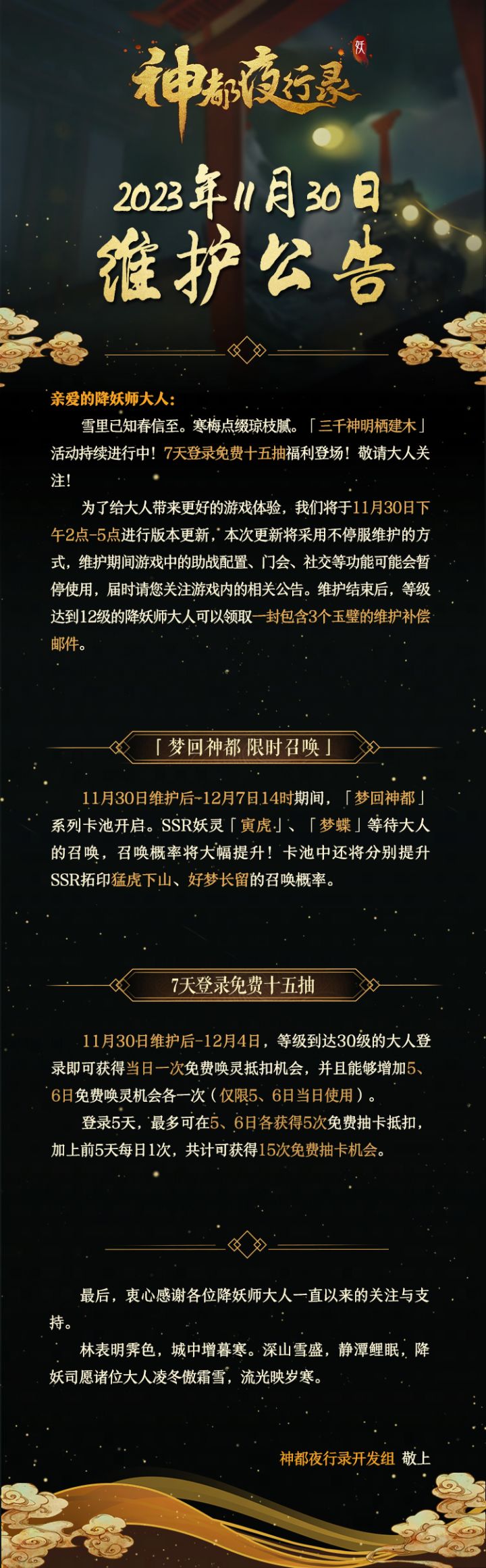 神都夜行录开发组 敬上