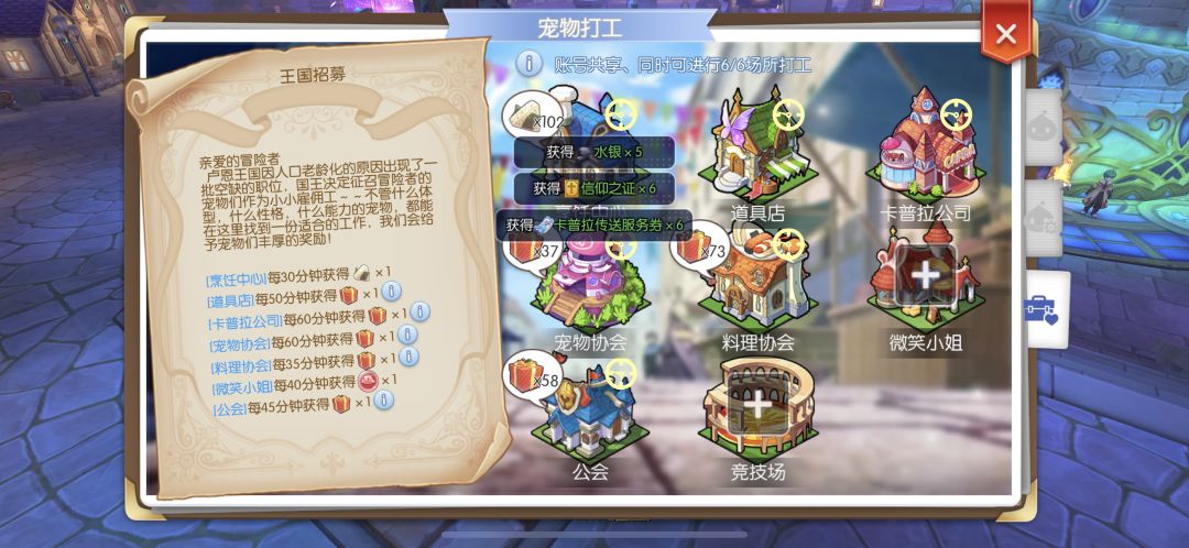 2. 打开宠物打工获取所有的收益。