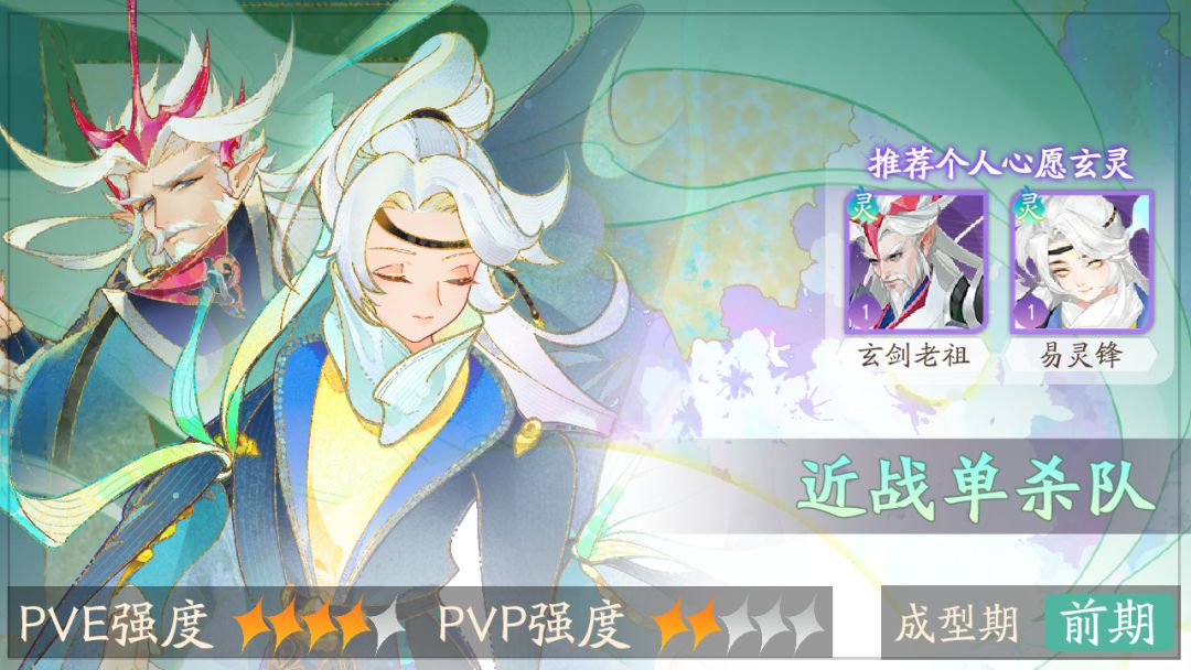 除了余梦雪,玄剑老祖也是配合易灵锋的不二人选。玄剑老祖的技能,大多携带「剑煞」效果,而当玄剑老祖解锁S1技能后,「剑煞」还会附带「剑意」,这正和易灵锋的机制相契合,玄剑老祖解锁S3技能后,攻击附加「剑意」的目标将会无视其防御力。易灵锋破盾在前,玄剑老祖无视防御在后,两人配合,就会形成极强的点杀组合 。