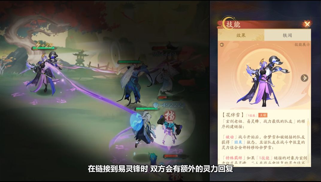 余梦雪的1技能,可以链接一位队友,在链接到易灵锋时,双方会有额外的灵力回复,加快两人一技能的释放。而余梦雪本就能为链接的队友提供高额的攻击加成和血量回复,这大大增强了易灵锋的生存能力和输出强度,两个人相辅相成,形成最强双人组。如果再配合上宁琴、青鸟这些辅助回能玄灵,易灵锋的攻击力和一技能释放频率再度提升,他便能化为最强剑仙,一剑便是一条性命,不论是谁,都逃不脱被穿透的命运。
