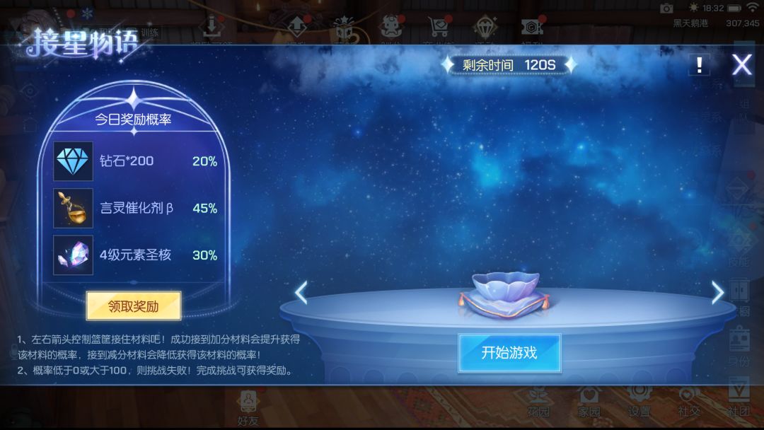 本次更新之后,【接星物语】的奖励将会有所提升,我们对领取奖励的钻石数量进行了调整,现在点击领取奖励时获得的钻石由50钻提升至200钻,让大家获得更丰富的钻石奖励!