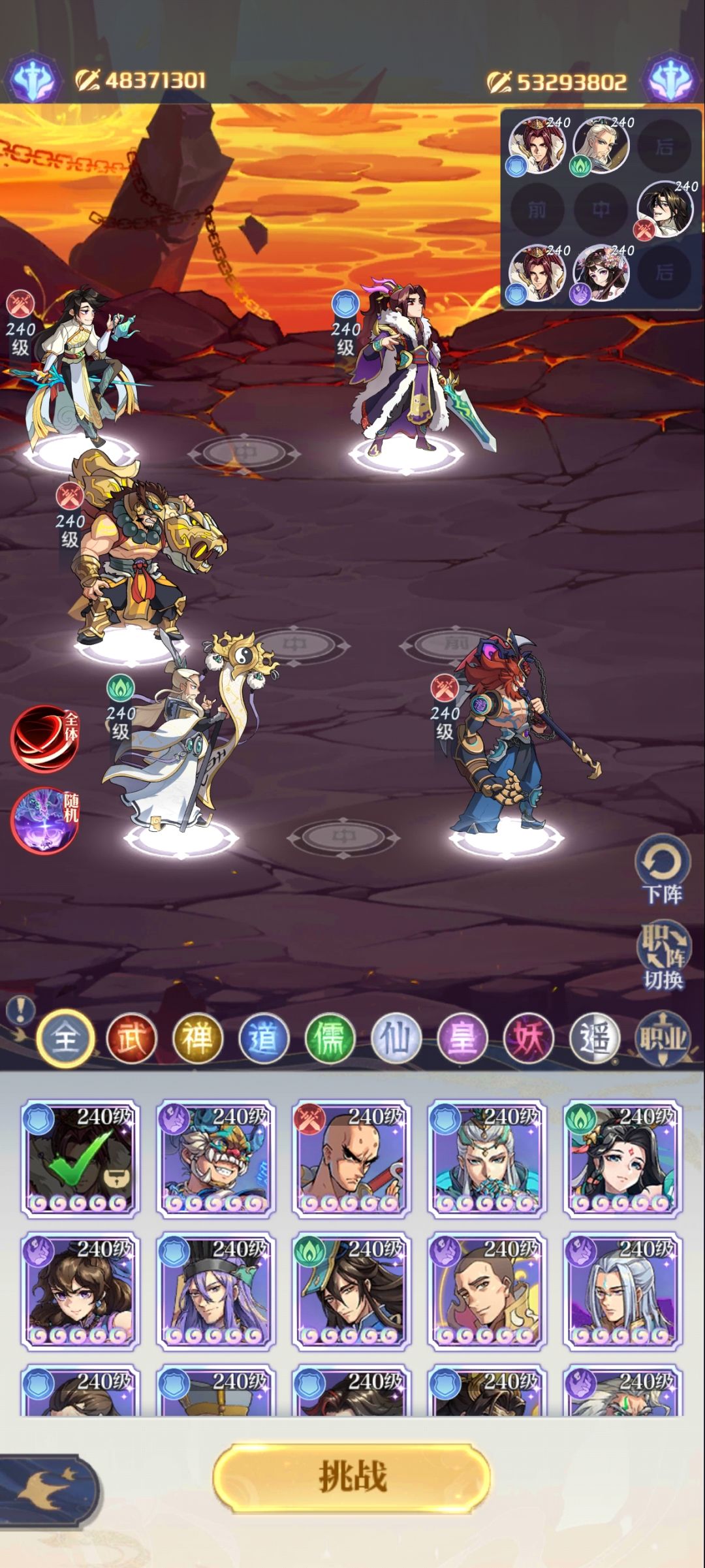 戚继光(对面不闪避的情况下)能把袁天罡的复活打完,然后李白配合二次技能好的戚继光把上面破掉,依次把下面破掉(钟馗可以换成穆桂英加个buff),记得运用好合道一波拿下