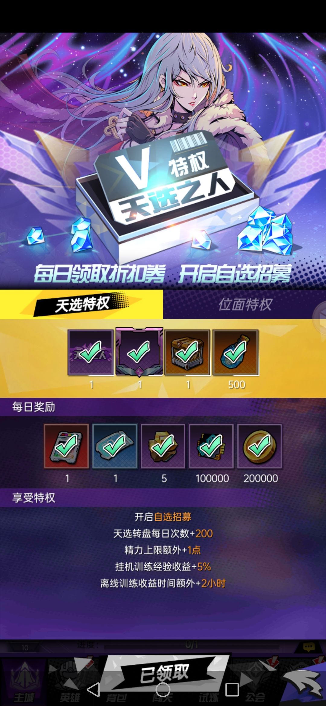 关卡榜:记住每天凌晨12点与下午3点开新区,或者看公告。最好开区就进,一直过关能快进了就直接快进节约时间,到免费训练用完后就氪68的训练卡,一边过等级一边通关直到训练次数用完,第二天重复操作,过关要最快,关卡榜的机制有点扯,是用时最短,不是介绍的最先到的。中途记得收累积经验就好。