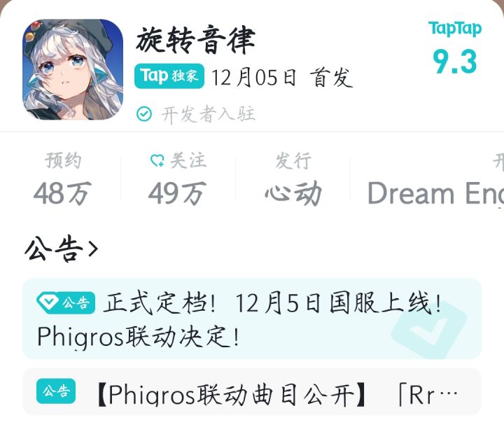 《旋转音律》将在12月5日正式上线,为庆祝上线,多款歌曲限时免费领取;