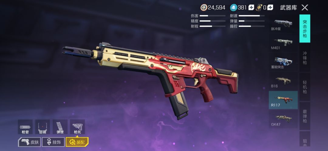 117——突击步枪R117,伤害比401低1,但是射速非常快,后座力高,属于上限高但是要练