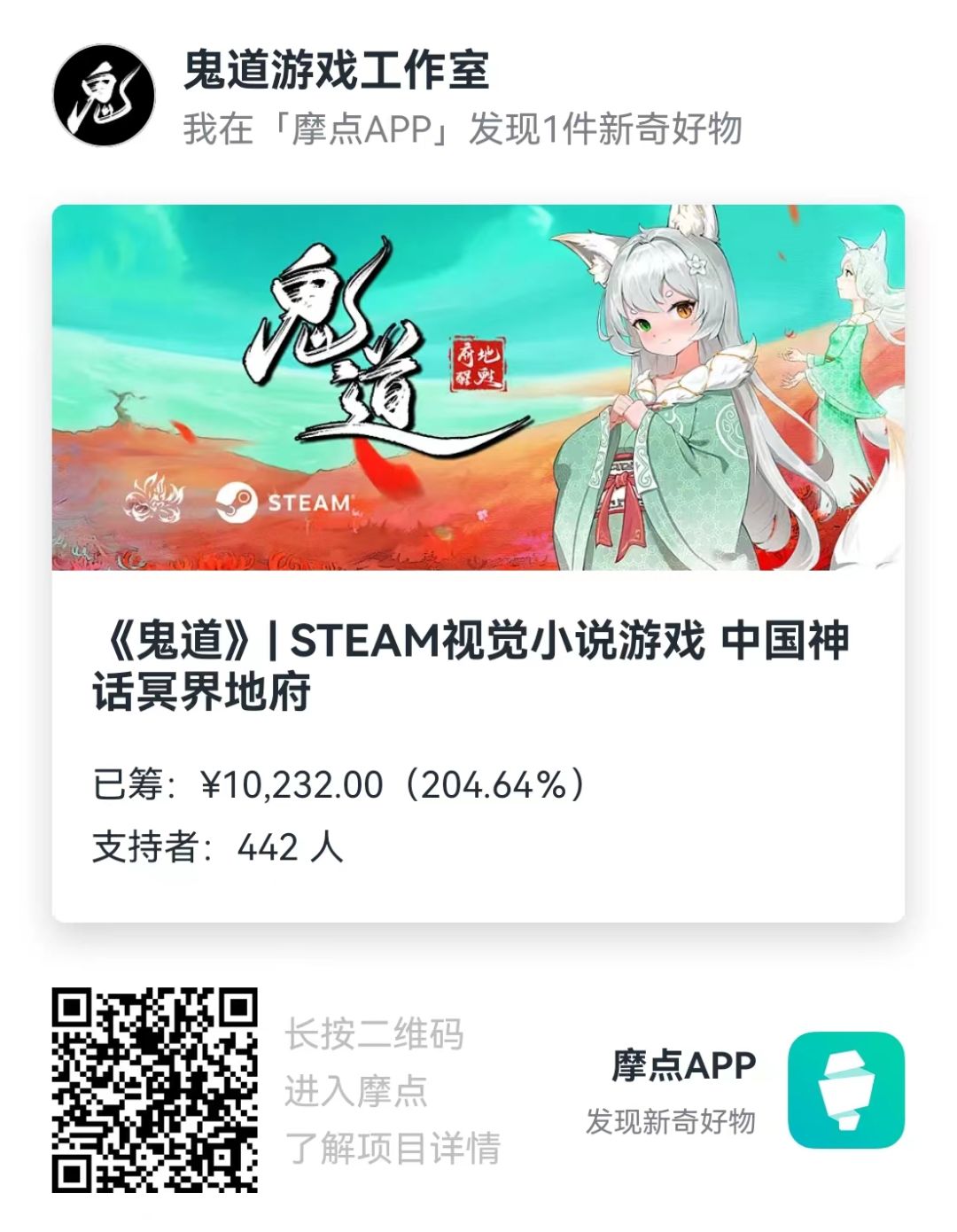 昨天晚上在摩点众筹上《鬼道:地府甦醒》众筹金额突破了10000元,离我们最初既定的5000元目标,整整翻了一倍。用时11天,我们取得了这样的成绩,得到了400多位位玩家们的默默奉献,这个过程离不开广大玩家们的支持和鼓励,真的由衷感谢你们!