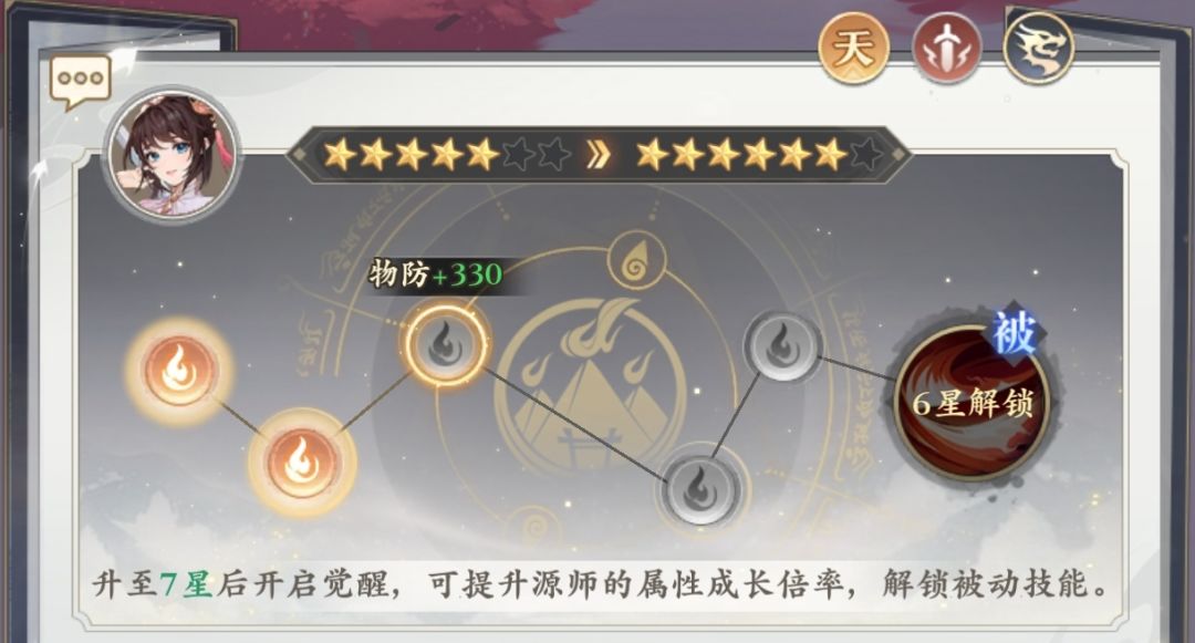 技能:战斗开始时附身于我方攻击最高源师,如果怒攻后没有暴击,则提升最高4层的5%暴击率;当叠加到4层时,下一次怒攻必定暴击,同时暴伤提升50%。