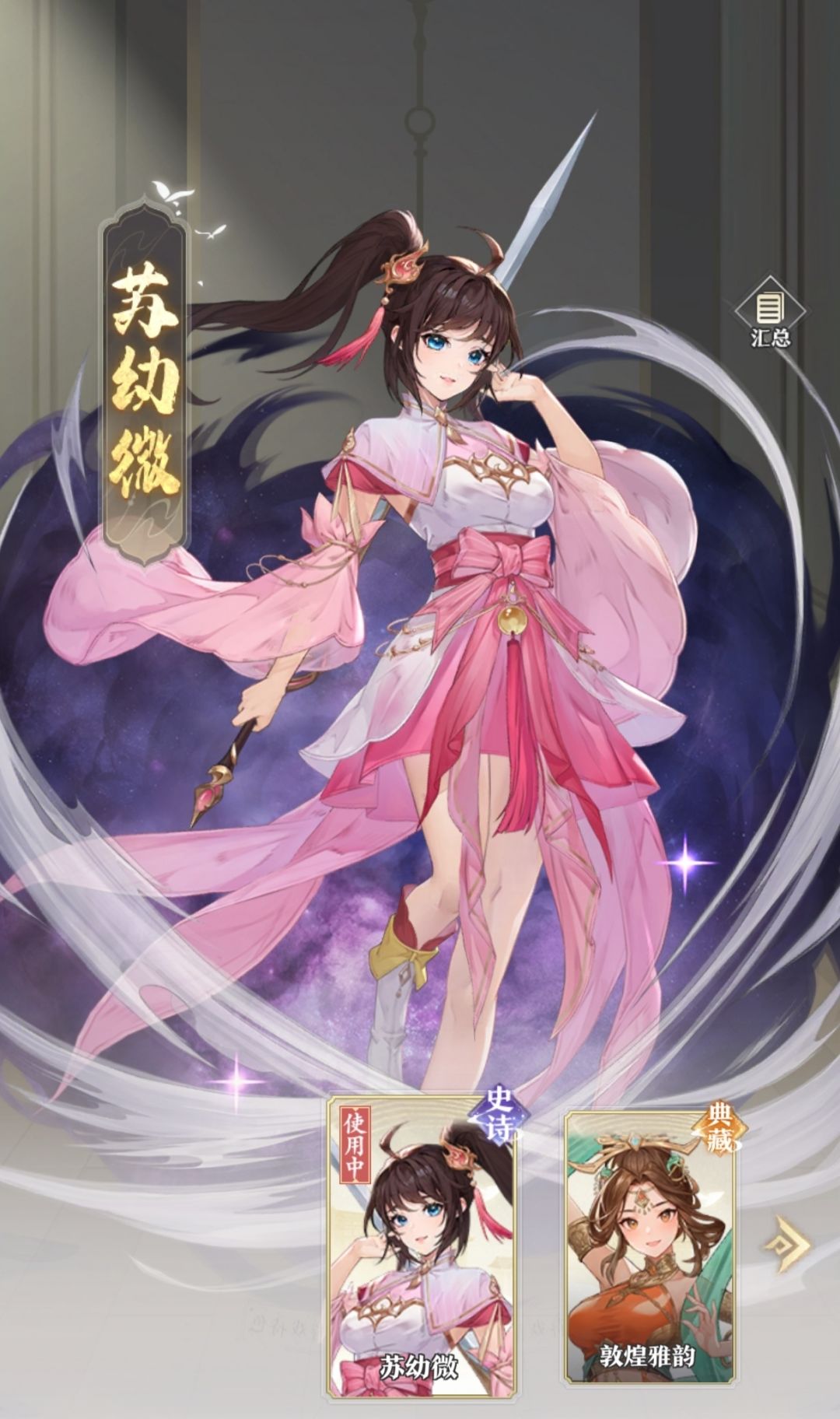 双天一绝,看起来还算不错,但在金卡中就显得有些拉了,因为金卡都是双绝一玄,幼微虽然没有玄,但她也少了个绝点,实际是是吃亏的,这导致除了技能,幼微的攻抗能力都没有太大亮点,就如之上所说,太均衡了,反而没有特长,沦为普通人。