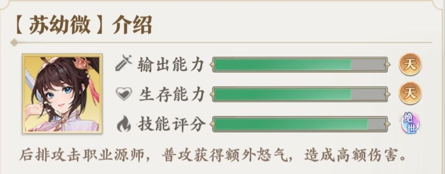 《元尊》手游-角色全评解图鉴-苏幼微角色评测性攻略