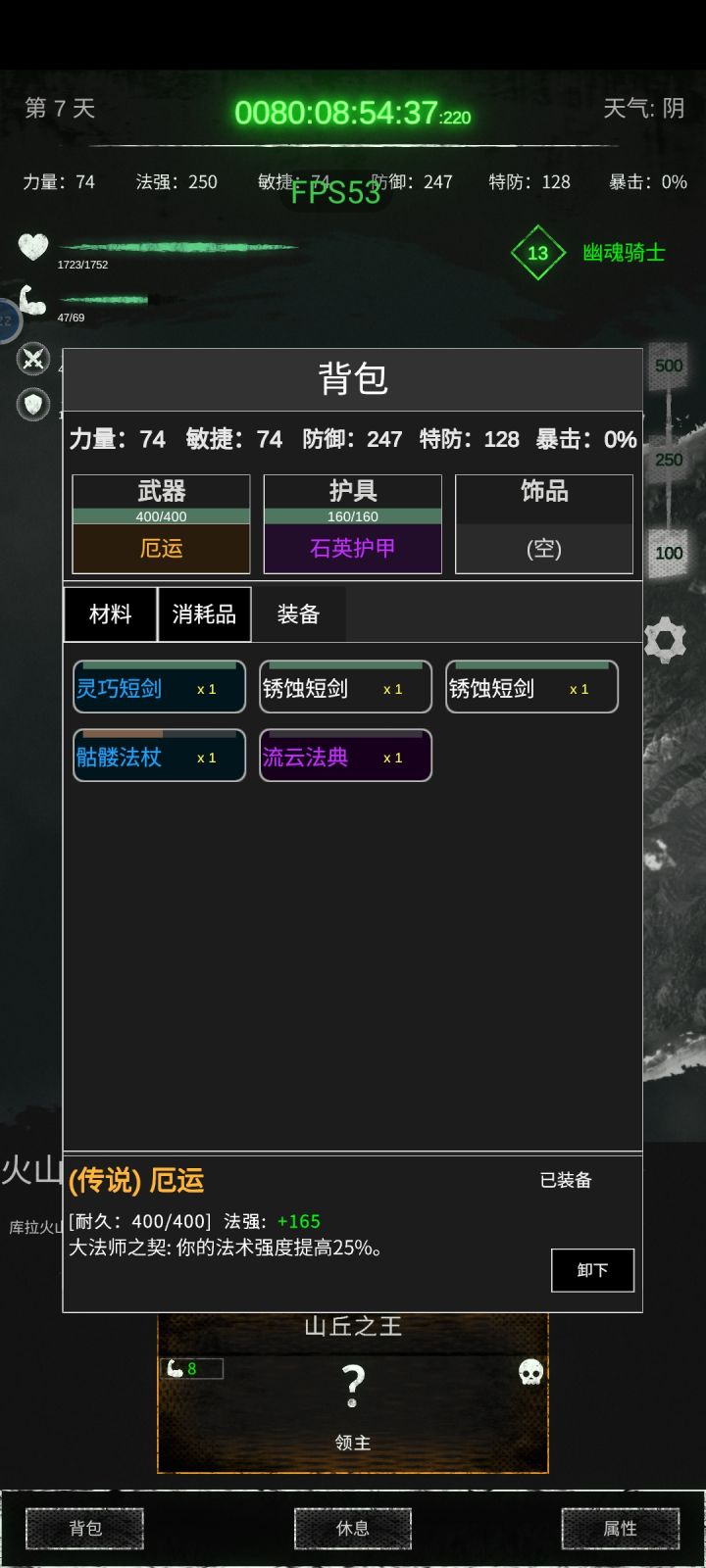 当时考虑到元素师火系列和毒刺系列都是随着攻击不断叠高伤害的,又想到了加敏捷的风行,就想试试不带防御技能冲第八关,因为没开出来金色的加速,最后基本纯靠输出(也是侥幸,没有贝莱特赞助的厄运的话胜负五五开)