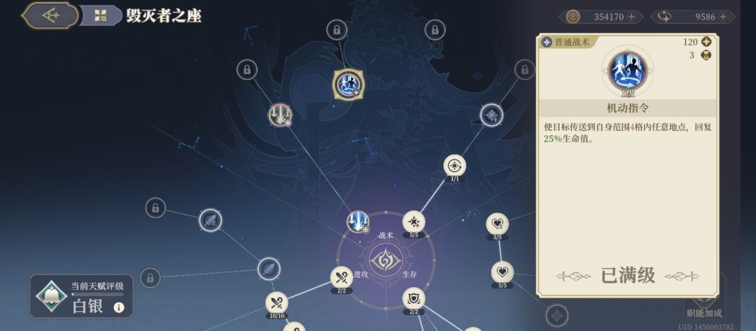 这里用到了天赋白银以后的战术技能“机动指令”和“行军号令”。