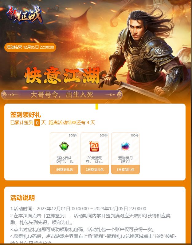 挂机国战MMO《新征战》签到福利1201(周五)--1205(周二)