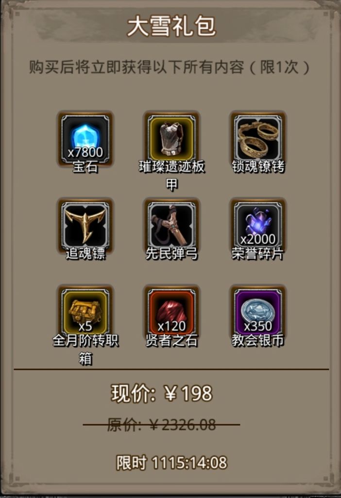 老规矩,先说结论——大雪礼包为地堡历年最强礼包之一,推荐指数接近满星。