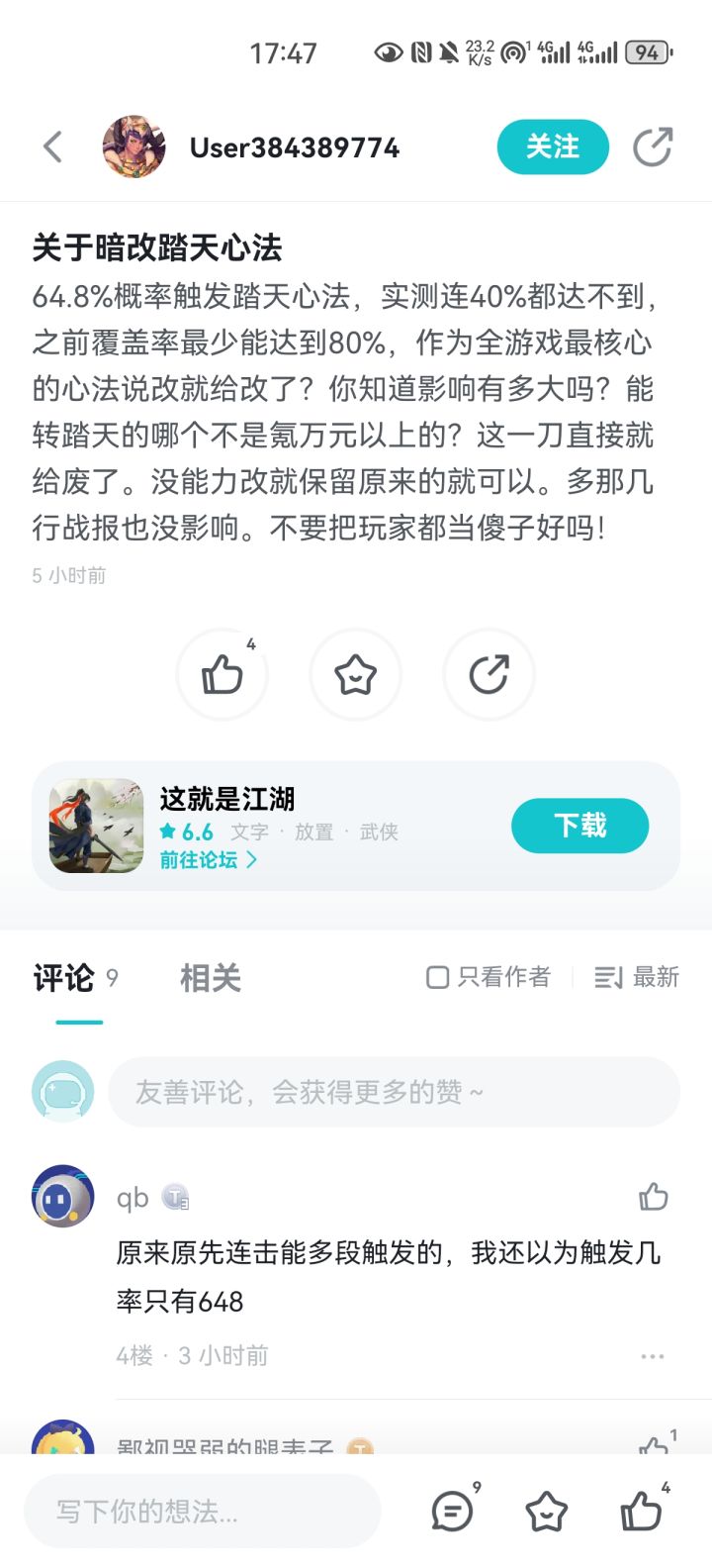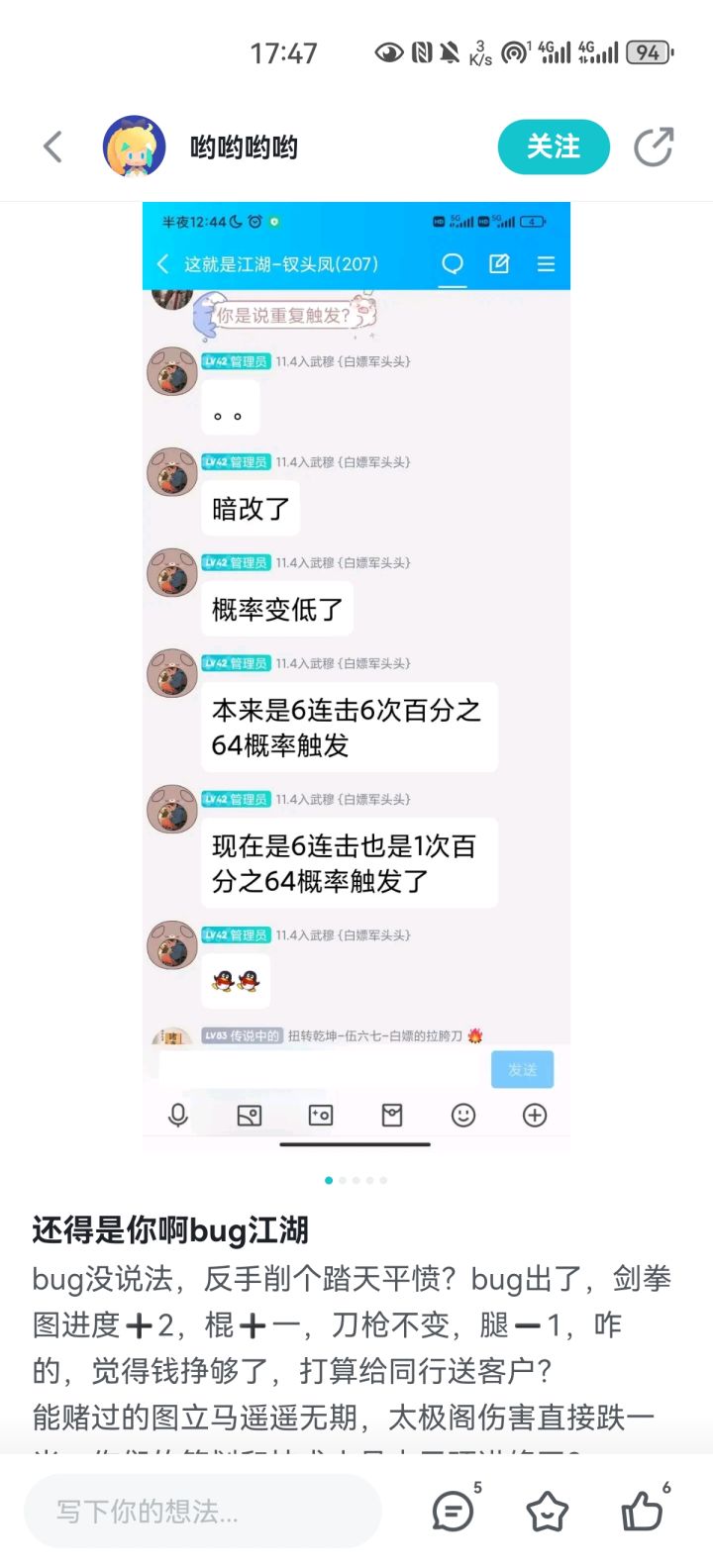 上述得出六连击的触发踏天心法概率99.8%,那么其他的连击也可以类似计算,说明触发概率严重超标。这次也就不是削弱腿,而是修复bug,维持平衡。