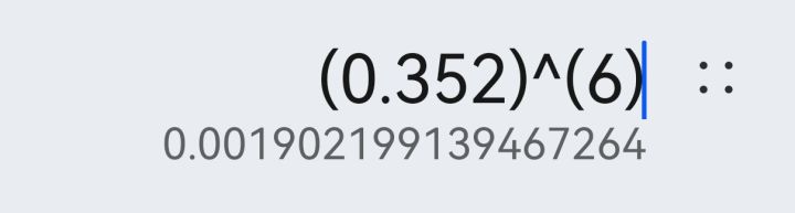 1-64.8%=35.2%,也就是每次计算有35.2%的概率不触发,那么六次单独计算,就是(35.2)%的6次方 结果为0.19%。文字翻译就是,在第一次不触发的条件下第二次也不触发,以此类推,求出报证六次计算都不触发,从而本回合不触发。也就求出实际触发的概率高达99.8%。这属于概率论的知识。