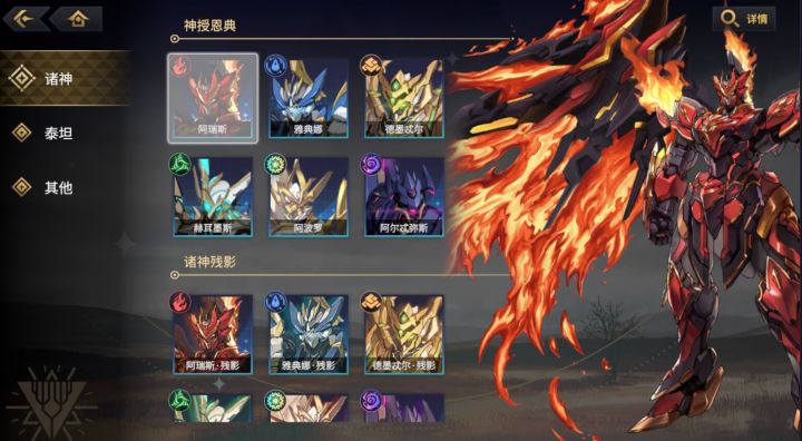 我用火的做示例,其他属性同理。泰坦(方阵)加护技能机甲适用于在各个多人本中掉落的回响(盘),而诸神(王)加护技能适用于在邂逅里的回响池抽到的。再根据自身装备的回响类别数量来决定用什么机甲作为主召唤位。加护技能影响了很大的输出和生存。诸神盘多但是没有王的小伙伴也可以在商会购买诸神限定礼盒,或将任意一个回想升到80然后前往活动领取一个假王(残影)自选来过渡用。泰坦(方)盘多的小伙伴建议将泰坦(方)机甲提升到满破(110%),终突看个人所需,终突需要的材料较多,泰坦突破所需的材料都能在各多人本中分别掉落,泰坦机甲在工坊内即可制造。另外幻象AI加护技能在游戏前期并无大作用,不必强求。主要提升就是泰坦(方)和诸神加护机甲(王)。