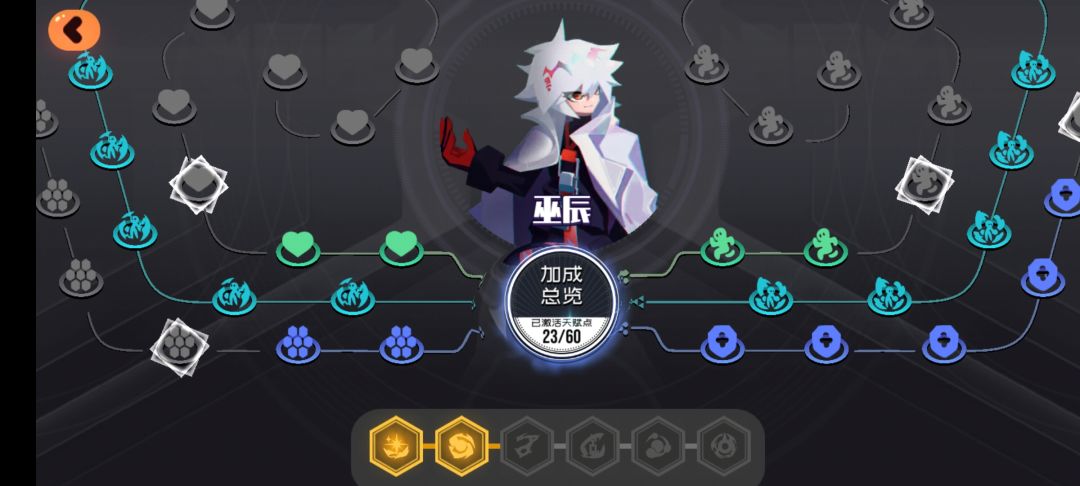 巫辰的状态为点亮两个天赋点,已经解锁7星技能