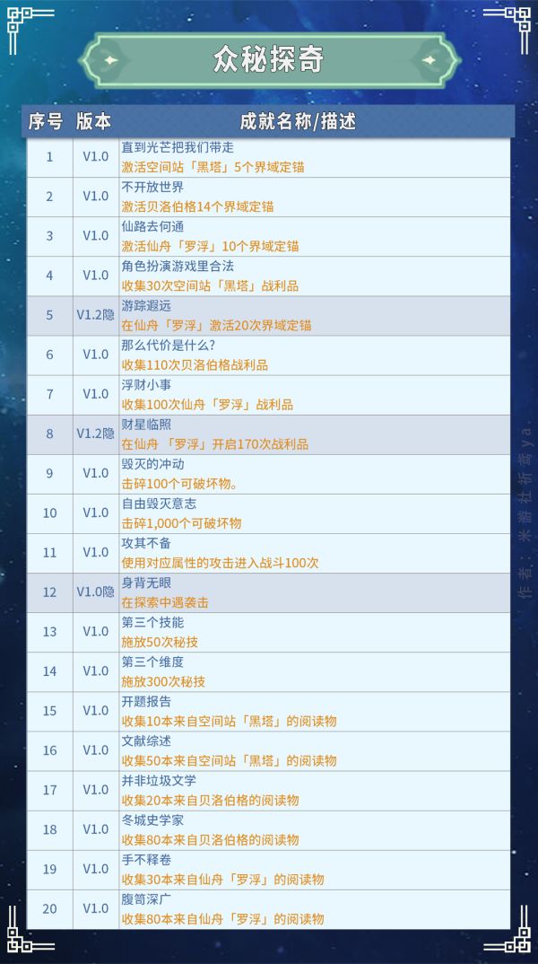 大家好呀,这篇内容汇总一下截止到1.5版本,星穹铁道的全部成就