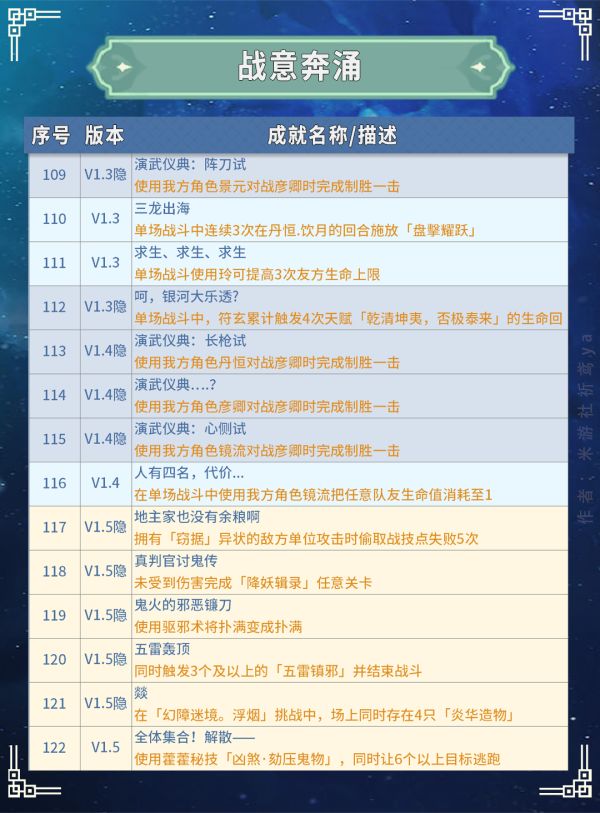 (3)其中1.5版本新增的成就,祈鸢就标黄了,方便查找