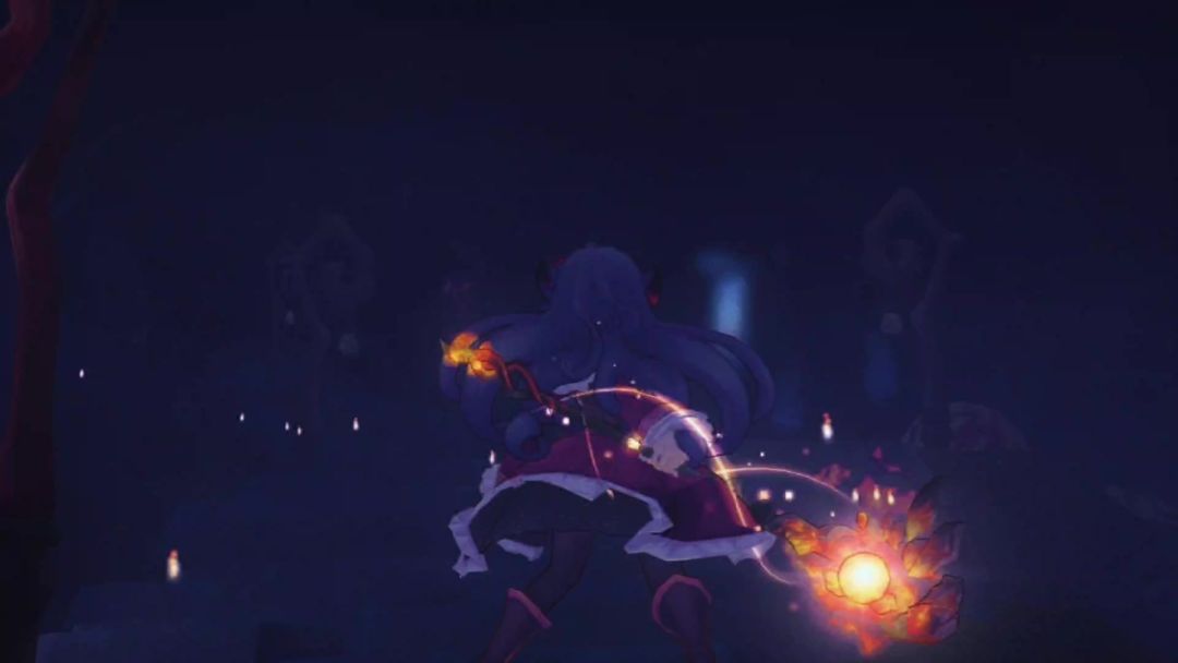 黑夜里闪烁着她魔杖的火光