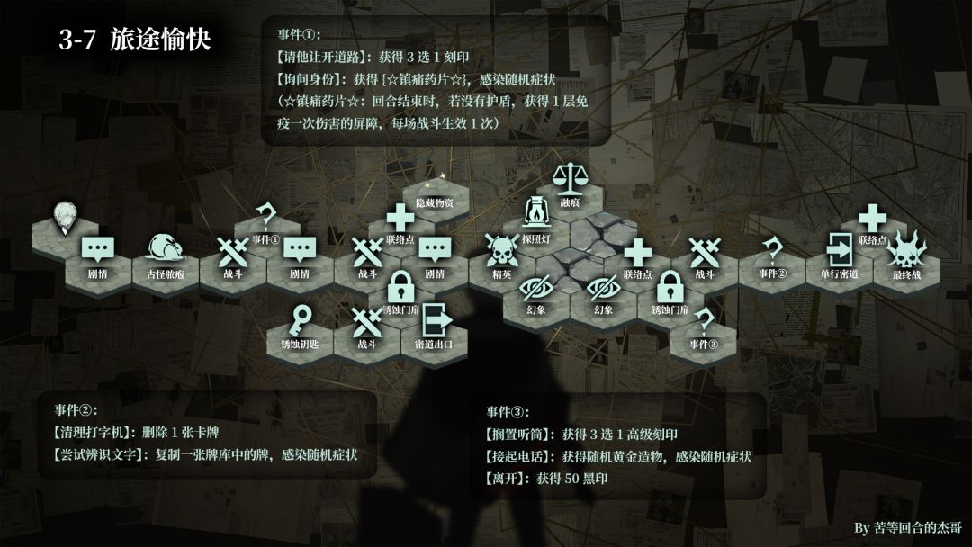 图里的事件描述“获得随机XXXX”等,在游戏中体现为你能看到获得哪一种,但是每一局游戏同样的选项最后获得的都可能不一样。