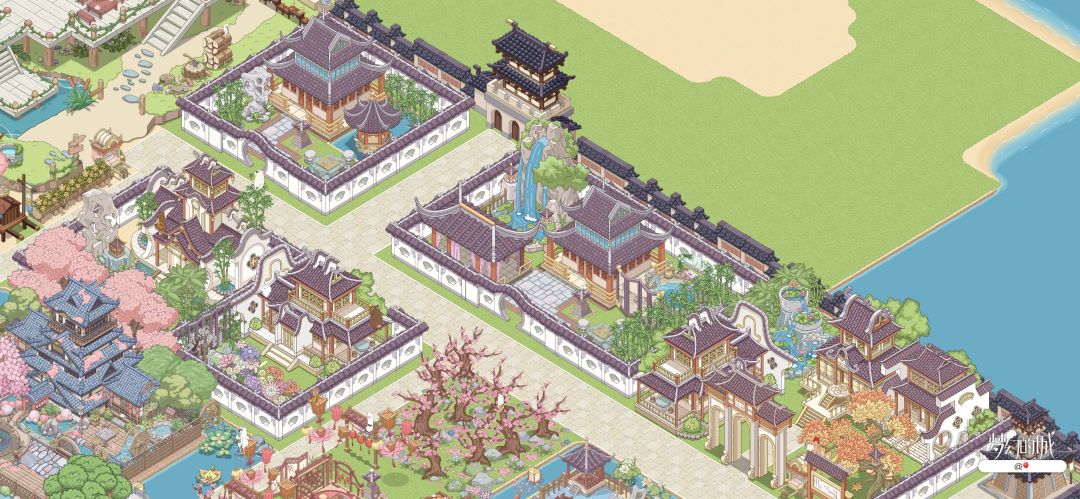 有了大户人家肯定需要一个类似于书院的地方,就用第三个海岛的建筑拼拼凑凑完工书院对面符合书院这个设定的桃花坞就在眼前啦