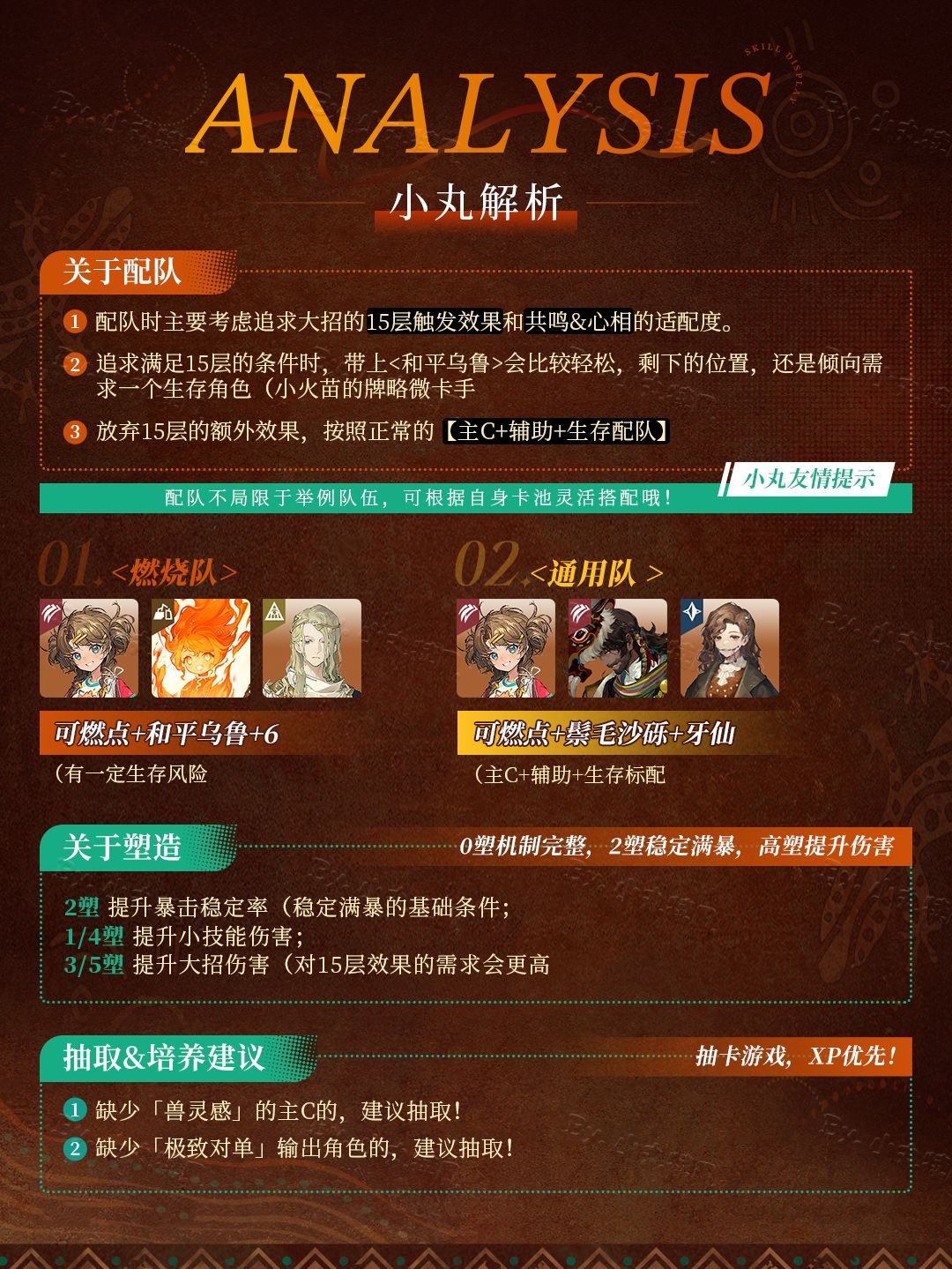 1⃣️角色定位2⃣️洞悉材料3⃣️心相推荐4⃣️技能解析5⃣️尤提姆6⃣️共鸣推荐7⃣️抽取建议8⃣️配队思路9⃣️塑造建议等角度 全面给出参考建议💬——————————————————
