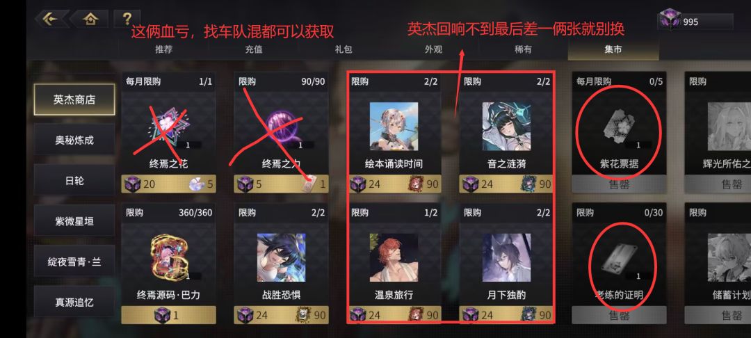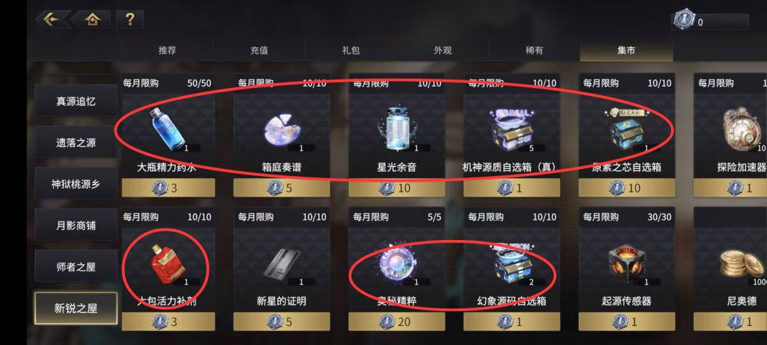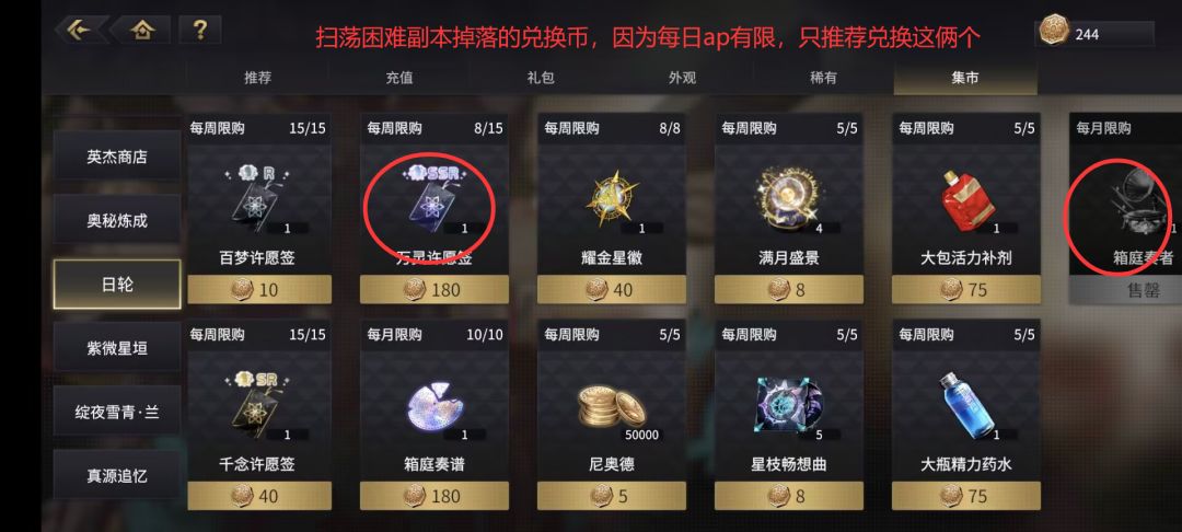 其余商店逛一逛就行开荒没什么买的东西,抽卡劵每月刷新一定要换。