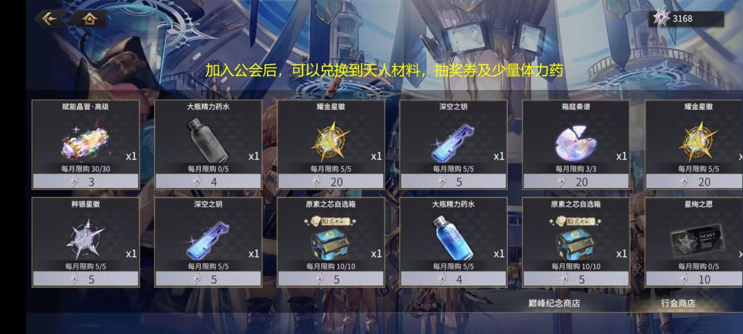 限时活动的商店只建议兑换稀有物品,如抽卡券,真源幻象碎片自选箱,紫薇星垣材料,心愿币、蓝色高级余音和金银星。