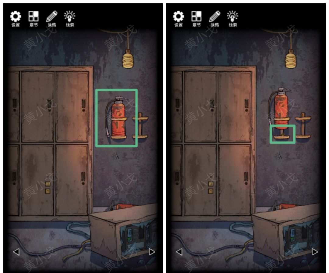 1.(储物柜)在灭火器🧯下获得【钥匙B】