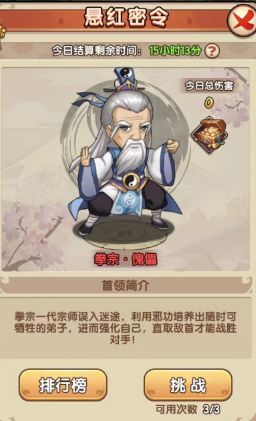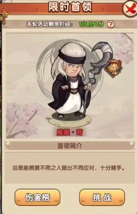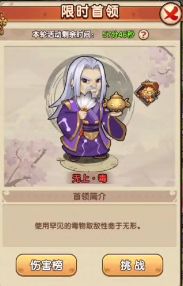 提示: 因为限时首领每11:00-13:00、18:00-20:00开放,每次开放均有1次挑战次数,奖励按排名最高的一次进行发放,首次挑战已经获得了较好名次的掌门可以在首轮结束后直接选择领取奖励,不再参加第二轮活动。所以在打排名的时候可以和区里的大佬协商下错开打,这样大家都可以领取靠前一步奖励。(PS:这里感谢下1区岳阳楼提供部分首领资料)。