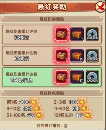每周1/4/6悬红活动伤害奖励图