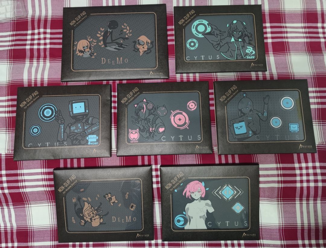 。。。但不得不说他们家一堆周边里,从实用性来说,防滑垫是最值的。手机用绝对够了,Deemo那个防滑垫有个大款,上图左上那个,可以放平板。