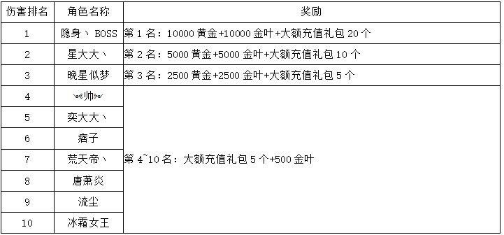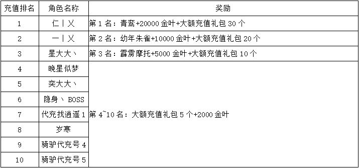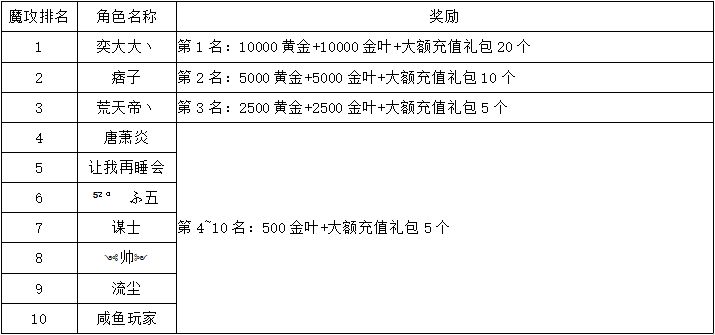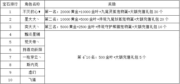 《世界OL》11月新区活动获奖名单
