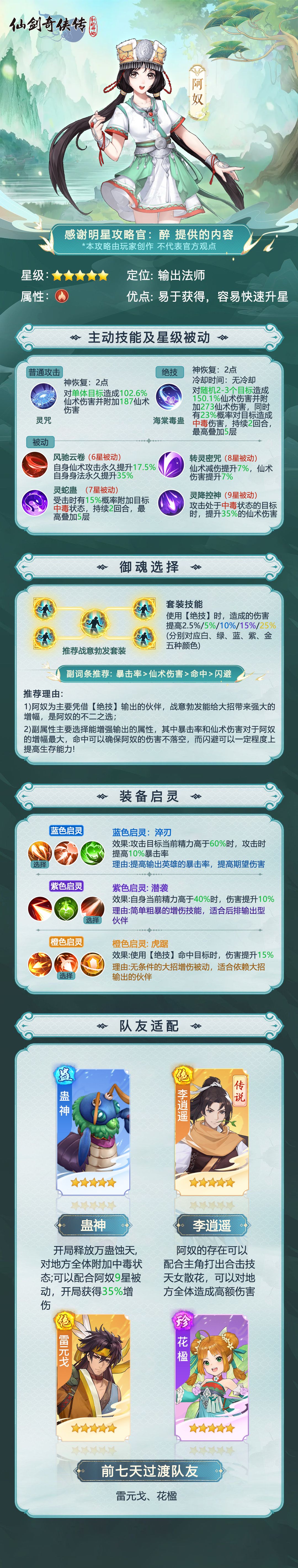 【玩家攻略】伙伴选择一图流——阿奴详解