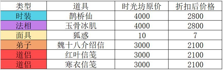本次更新为道友们带来了新的时光坊商品,上新折扣持续7天,持续至12月10号24点,折扣为7折。