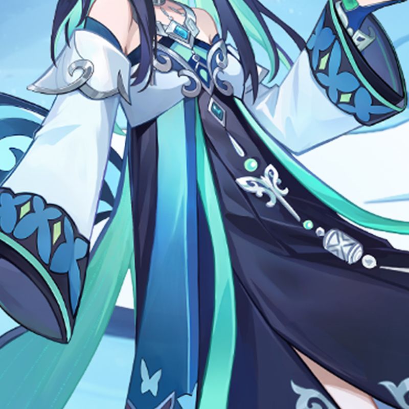 出于织在空桑的地位考量,织的整体配色采用较为克制的深色系,在其中仍使用几分亮色作为外衣上的点缀,使得织的服饰在突显出华丽气质的同时又不会显得艳俗,也更为契合她的身份。