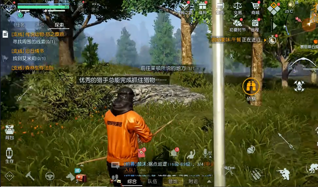 找到莱顿接到任务。然后跟随任务指引老萨姆的孙子和老萨姆分别完成对话。然后就开始调查开启侦察模式。最终打败麋鹿之后任务完成。