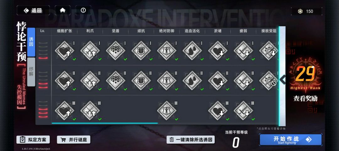 利爪Ⅲ坚盾Ⅱ抗性Ⅱ绝对防御Ⅰ造血活化Ⅱ淤堵Ⅲ疲弱Ⅱ接敌受阻Ⅱ周转不畅Ⅱ机动堪破Ⅱ神经退行Ⅰ惰性化Ⅰ反侦查Ⅰ