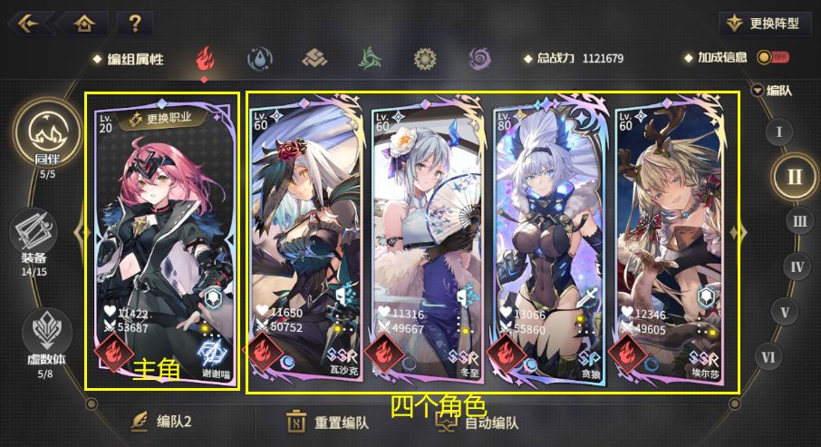 悠久之树的角色都有自己的属性,一般来说,同一属性的角色会在一起组队,每个队伍可以上场4名角色,即同伴区的后四个位置。