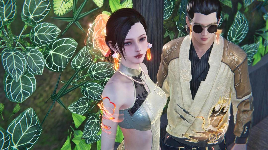 玫色风华,染尽好时光。国潮时装【玫色人生】男款为不规则长褂,彼岸花刺绣宛如燃烧的火焰,动态的赤金飞鸟穿梭于花丛,松弛又不失自信。女款旗袍华美的绸缎上绽放朵朵忘川,白色披肩配有翡翠金饰,风姿绰约,穿上后就像是与之度过了一场瑰丽的人生。