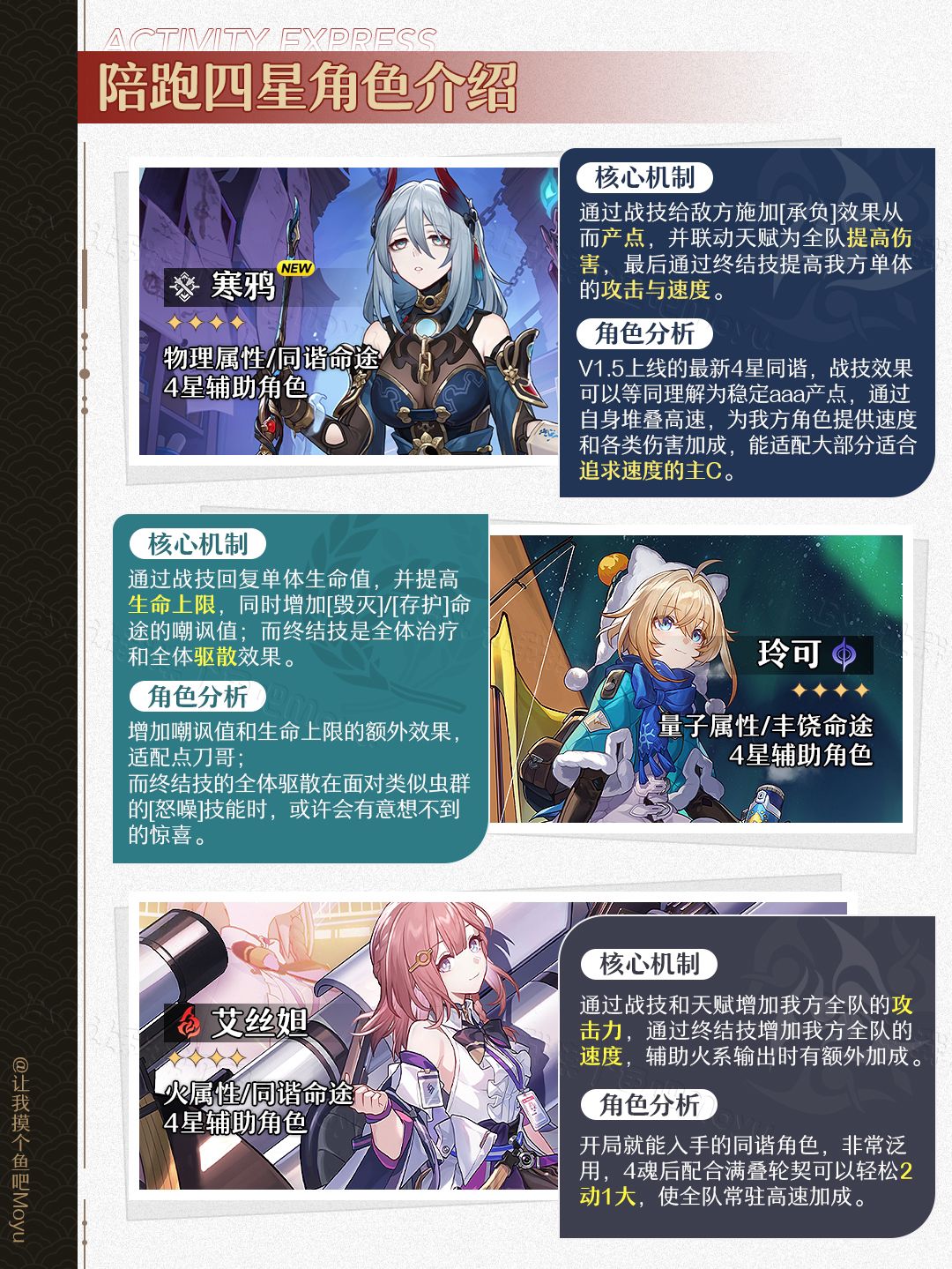 文中包含了【角色卡池/光锥卡池】UP5星&陪跑4星的信息。