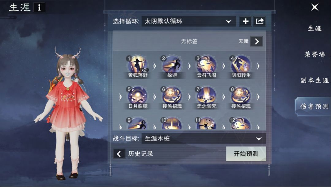 另外,少侠还可以点击“打一遍试试”按钮,系统会自动按照循环顺序播放一次少侠战斗的过程,不仅可以让少侠欣赏自己的帅气身姿,还可以仔细观察增益效果的覆盖情况,不断优化自己的循环手法哦~