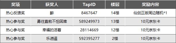 由策划选取5位非常认真参与的籼米获得仙剑正版周边随机*1