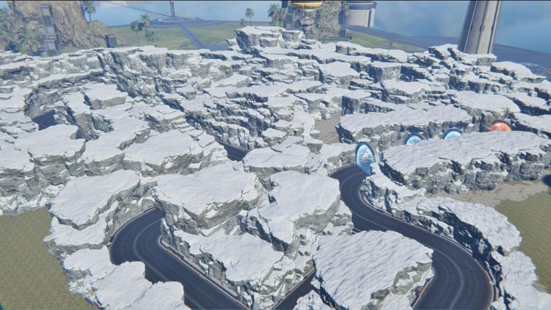 设计竞速赛时,需布置1个起点线和1个终点线。赛道种类多样,在柏油路、草皮路、沙地路、冰雪路上跑车的手感各不相同,还有加速门、减速门、路障等功能点,来人,全场都放减速门!