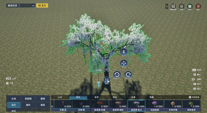 使用地表笔刷可将草地修改为沙滩、岩石、柏油路等,还能放大缩小、设置是否模糊边缘,画画人狂喜!在地貌编辑处则可以添加水池、抬高地面,并且水池、地面都可以修改高度~