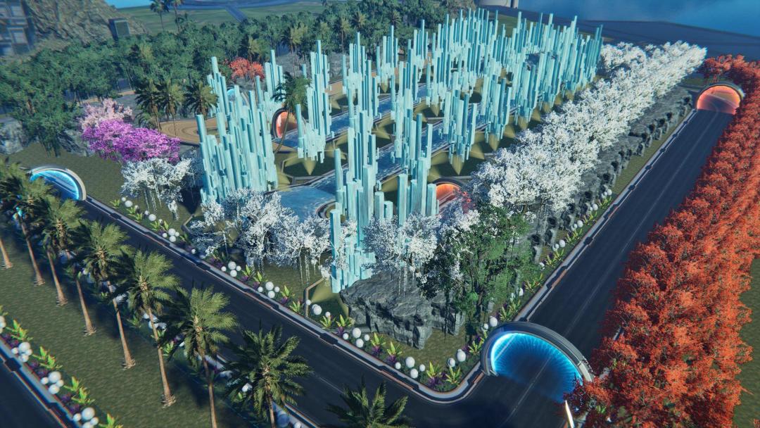 而地图工坊为自由编辑区,无需消耗生存资源。目前共开放了自由建、竞速赛、杆位赛三种玩法类型,点击【我的地图】即可创建。提供的基建、模组数丰富,可以建造出雪山、博物馆、花园等等,任你发挥想象。