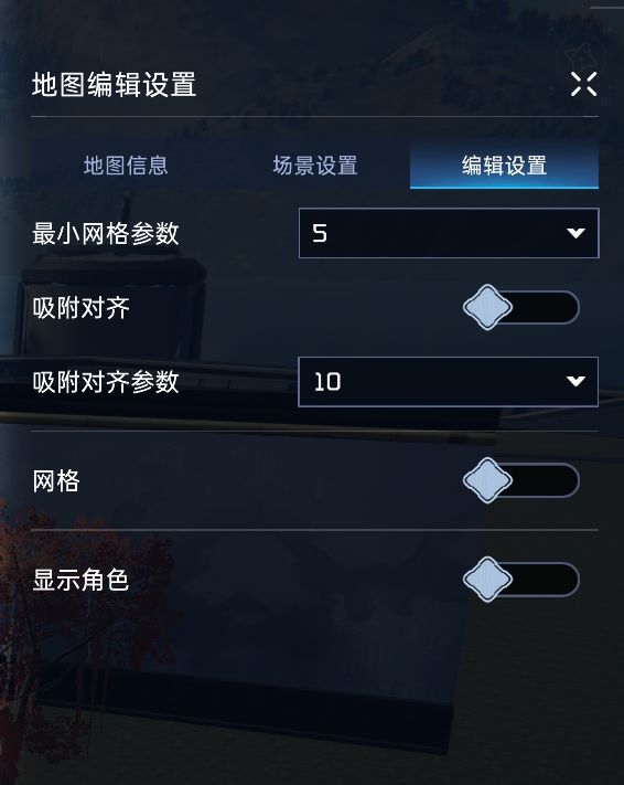 经过阿姨多次实验,幸存者在开造之前一定要先打开右上角的【设置】功能,提前设定好编辑设置!定义好最小网格参数、吸附对齐参数~啥叫吸附?吸附对齐就是在放置设施时就它会自动贴贴到网格上~