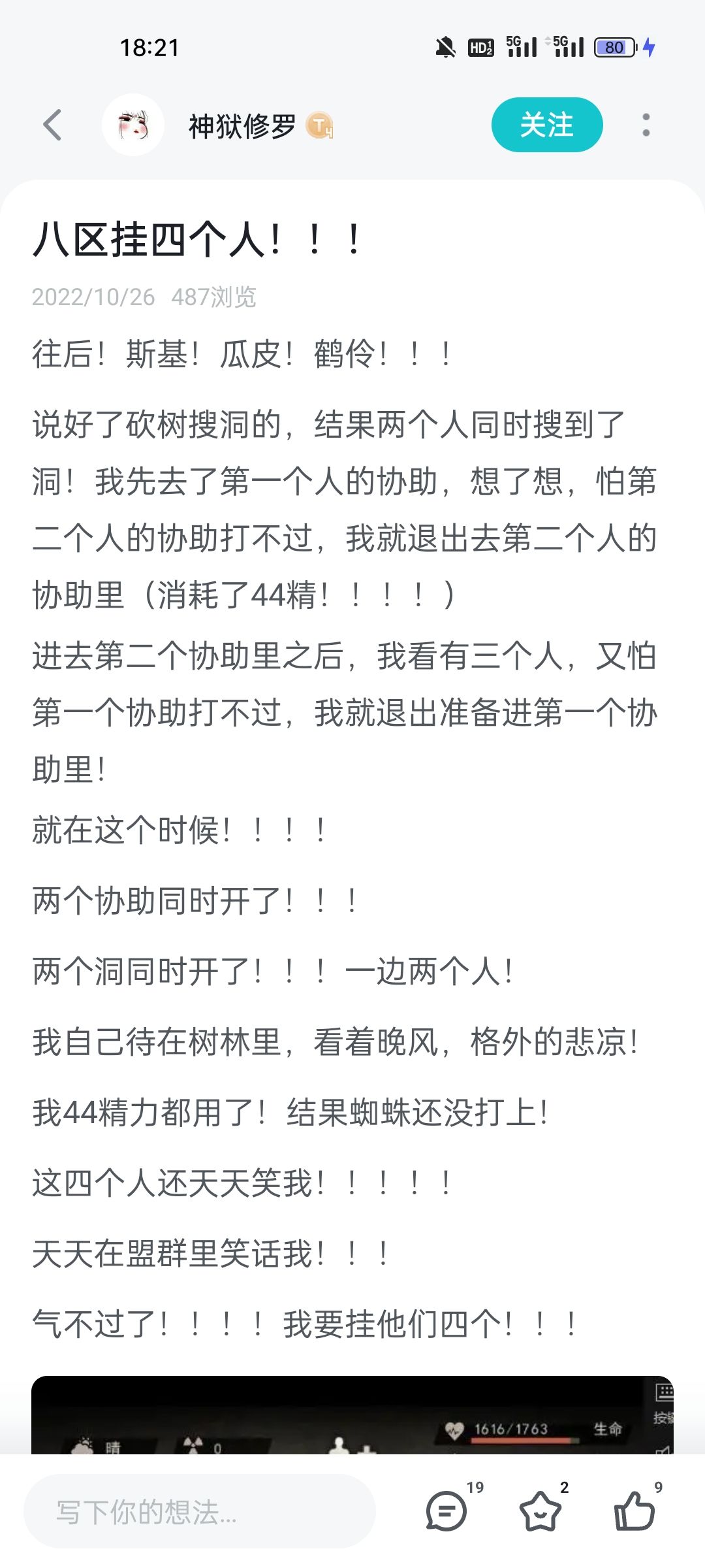 首先,我们需要组队摇人,通用话术:蜘蛛一人一洞,蜘蛛砍树多搜,蜘蛛童洞全包等等,与其他副本结合则多为蜘蛛水怪十连,蜘蛛水怪乌鸦十一连等等。
