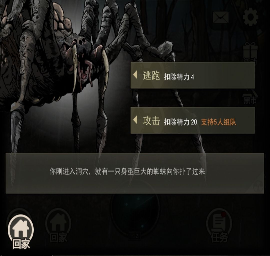 看到蜘蛛boss后,确认队友状态,准备开始,需要20精力攻击,队友则需要22精力协助。